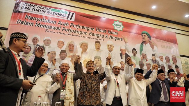 | Jakarta, CNN Indonesia -- Pasangan Prabowo Subianto-Sandiaga Uno menyatakan siap menjamin keamanan dan memulihkan hak-hak Rizieq Shihab bila nanti mereka terpilih menjadi presiden dan wakil presiden 2019-20124. Kesiapan tersebut tertuang dalam pakta integritas Gerakan Nasional Pengawal Fatwa (GNPF) Ulama yang ia tanda tangani dalam Ijtima Ulama II di Jakarta Minggu (16/9). Selain itu, Prabowo menyanggupi untuk memberikan keadilan kepada para tokoh aksi 411,212 dan 313 yang saat ini menghadapi proses kriminalisasi atas tuduhan makar. "Penegakkan keadilan juga perlu dilakukan terhadap tokoh yang mengalami penzaliman," katanya mengutip bunyi penggalan poin 16 pakta integritas tersebut, Minggu (16/9). Dalam poin selanjutnya, Prabowo juga berjanji akan menghormati posisi ulama dan bersedia mempertimbangkan pendapat para ulama dan pemuka agama lainnya dalam memecahkan masalah bangsa.