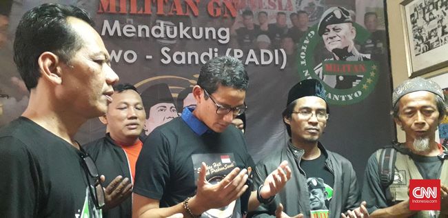 | Jakarta, CNN Indonesia -- Bakal calon wakil presiden Sandiaga Uno menjanjikan siap menampung Gatot Nurmantyo dalam tim pemenangan Prabowo Subianto-Sandiaga. Menurut dia, jika terpilih maka bukan tidak mungkin melibatkan mantan panglima TNI itu dalam pemerintahan. "Tentunya sudah (siapkan posisi) kami pastikan Pak Gatot punya peluang untuk menyampaikan pikiran-pikiran dan gagasan," kata Sandiaga dalam deklarasi dukungan Relawan Gatot Nurmantyo, di kawasan Melawai, Jakarta Selatan, Kamis (6/9). Sandi mengatakan selama ini Prabowo telah berulang kali berkomunikasi dengan Gatot terkait arah dukungan. Ketua Umum Relawan GN, Irfani Rahman Djojosudiro mengatakan dukungan itu mereka sampaikan setelah diajak langsung oleh Sandiaga bergabung mendukung Prabowo-Sandi. "Kami sangat apresiasi dengan ajakan Pak Sandi. Kami merasa terpanggil. Saya kira ide beliau juga beririsan dengan Pak Gatot, untuk itu kami bersedia dukung Pak Sandi maju di 2019," kata Irfani. Irfani menyebut pihaknya pun telah sepakat mengubah nama Relawan Militan GN menjadi Relawan GN PADI. "Jadi sekarang menjadi Gerakan Nusantara Prabowo-Sandi, disingkat GN PADI," kata dia. Irfani menyatakan alasan menerima pinangan Sandi bergabung adalah karena Sandi memiliki kedekatan khusus dengan Gatot Nurmantyo. "Beliau (Sandi) dan beliau (Gatot) ini dekat, tentunya karena Pak Gatot tak jadi naik, kami alihkan dukungan. Alasannya pun karena memiliki visi dan misi yang serupa," kata dia. Dalam kesempatan itu, Irfani juga mengklaim telah memiliki seratus ribu anggota dari 27 provinsi. Kini seluruh anggota itu dipastikan telah memberikan dukungannya untuk Prabowo-Sandi. Mengetahui hal itu, Sandi yang juga berada di lokasi mengaku sangat bersyukur atas dukungan yang diberikan relawan Gatot ini. Apalagi kata dia, para relawan ini pun sebelumnya telah gencar mengenalkan Gatot ke seluruh pelosok negeri. "Saya ucapkan terima kasih ke teman-teman militan GN. Militan Gatot Nurmantyo. Bagi kami ini adalah luar biasa," kata Sandi. (ayp) Let's block ads! (Why?) via CNN Indonesia https://ift.tt/2CnXv7b |