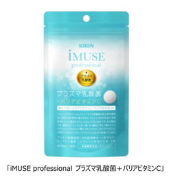 「iMUSE professional プラズマ乳酸菌+バリアビタミンC」は、1日の摂取目安量である2粒に「プラズマ乳酸菌」約1000億個を配合した、ヨーグルト風味の栄養機能食品(ビタミンC)。水なしで噛んで摂取できるチュアブルタブレットで、持ち運びにも適している。現在は、全国の調剤薬局・クリニック・病院内売店などで販売している。