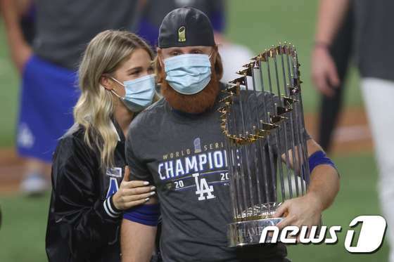 | LA 다저스 저스틴 터너가 코로나19 확진 사실을 알고도 월드시리즈 우승 세리머니에 참가해 논란이 일고 있다. © AFP=뉴스1 |