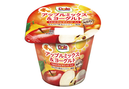 「Dole 冬のアップルミックス&ヨーグルト+ビタミンD」は、冬に旬を迎えるりんごと、食感がクセになるナタデココが食欲を掻き立てる、冬にぴったりのフルーツ&ヨーグルト。カロリーが気になる人にも最適な脂肪ゼロのヨーグルトに、アクセントとしてレモンの爽やかな酸味とほんのり香るジンジャー風味を加え、フルーツのおいしさを引き立てた冬限定のフレーバーに仕上げた。