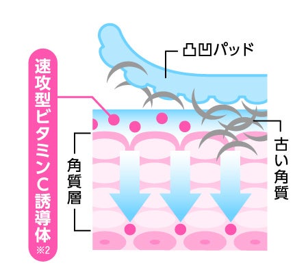角質クリア成分と凸凹パッドのW効果で古い角質をオフすればいつものスキンケアもグングン高浸透。パッと輝くあかぬけ透明肌に♪