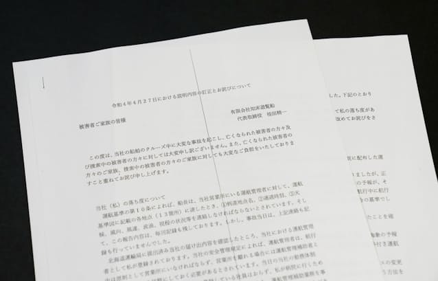 文書でも、北海道運輸局への届け出内容を確認した結果として、桂田社長が同社の運航管理者だったとしている。〔共同〕