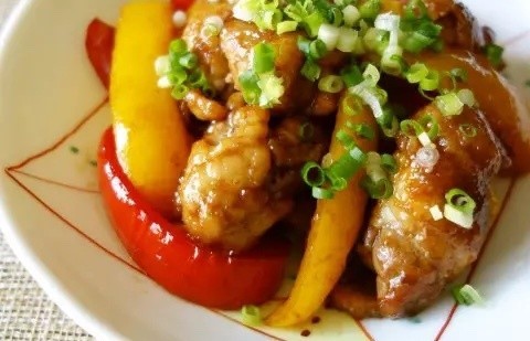 柔らか豚肉とパプリカの黒酢炒め