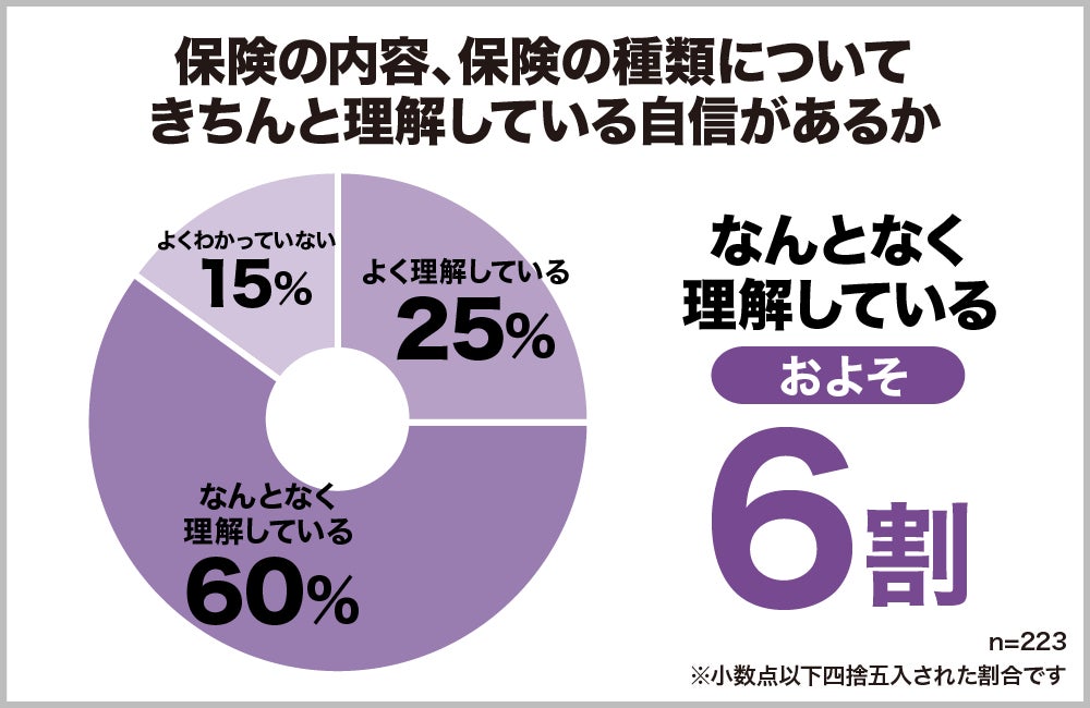 保険の内容についてきちんと理解できている自信があるか聞いてみたところ、「よく理解している」と答えた人はわずか25%でした。