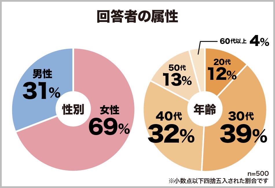今回は、保険に加入している500人の方にアンケートを取りました。性別、年代の割合は以下の通りです。
